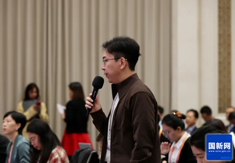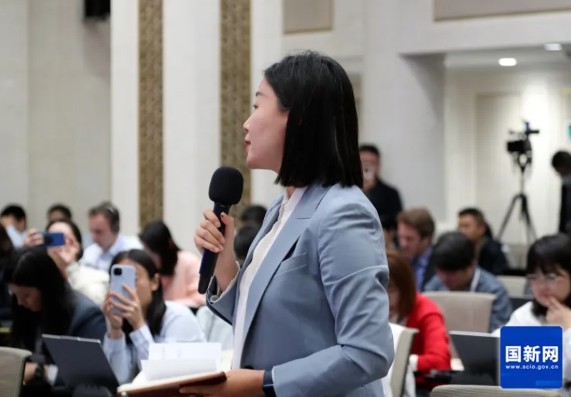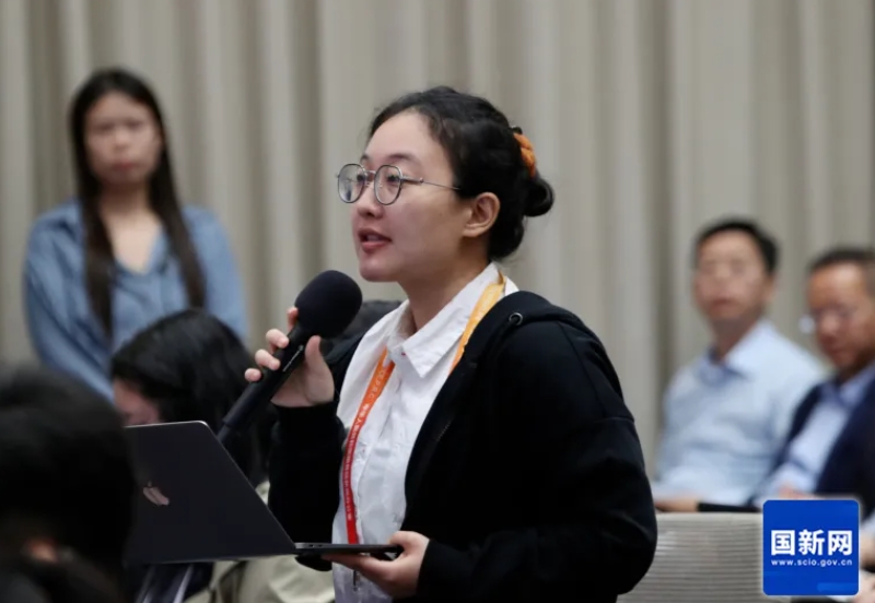 美国国际市场新闻社记者提问(赵一帆 摄)